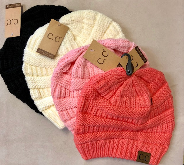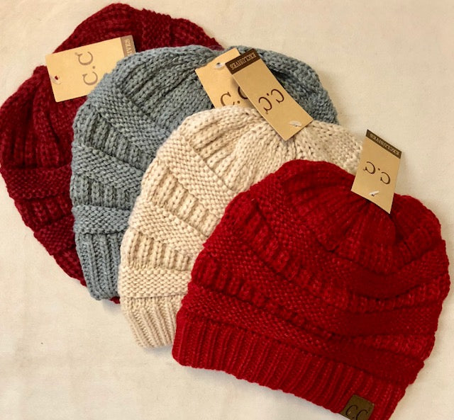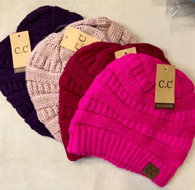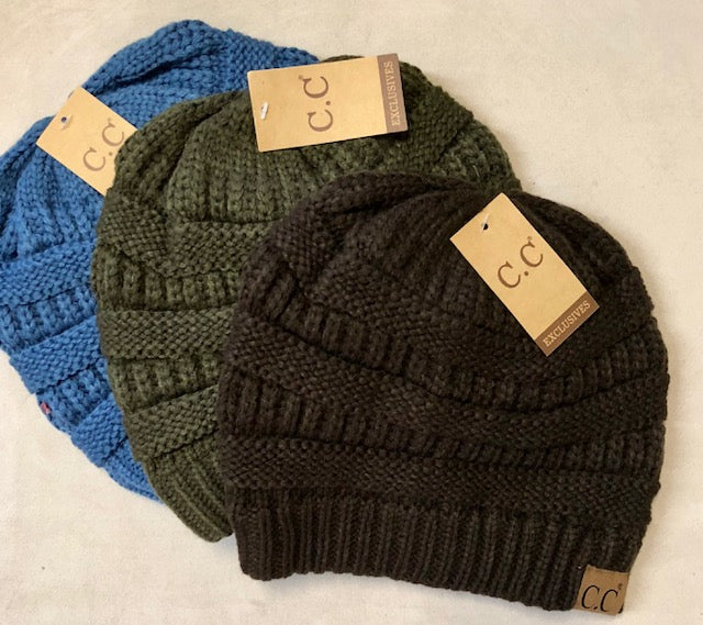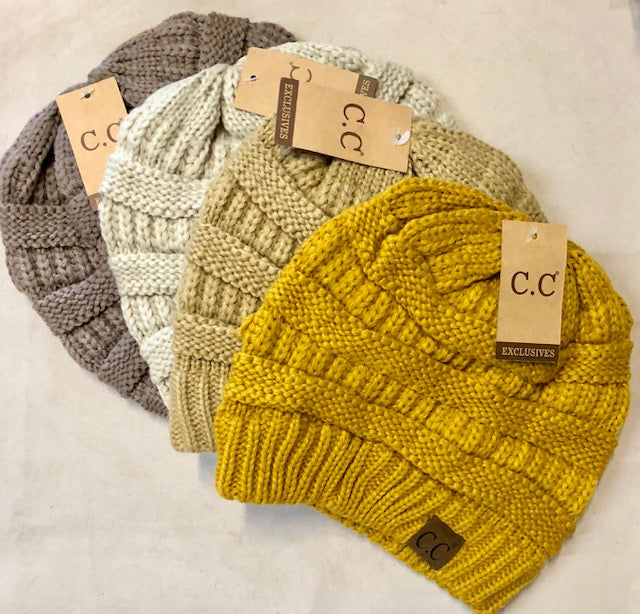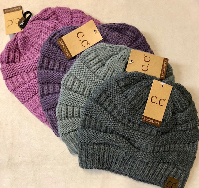 This ever-popular cable knit beanie by "CC" in multiple colors. So warm and soft against your skin too.