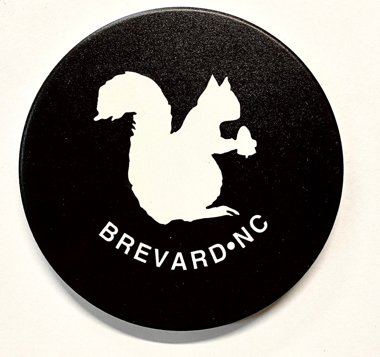 This 4" ceramic absorbent coaster has a white squirrel design with Brevard, NC. It has a cork backing so it will not scratch your furniture. It totally absorbs liquid.