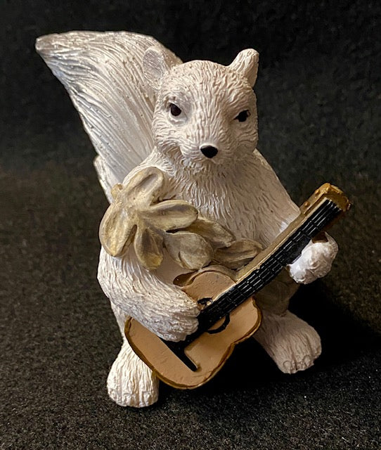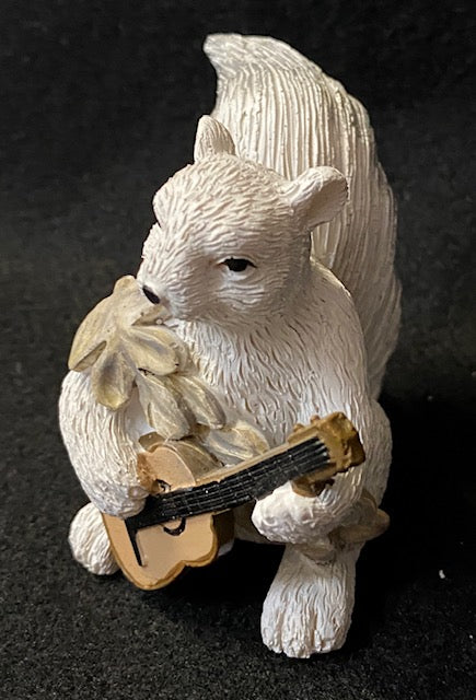Figurine - Resin - White Squirrel with Guitar - Hand-Painted