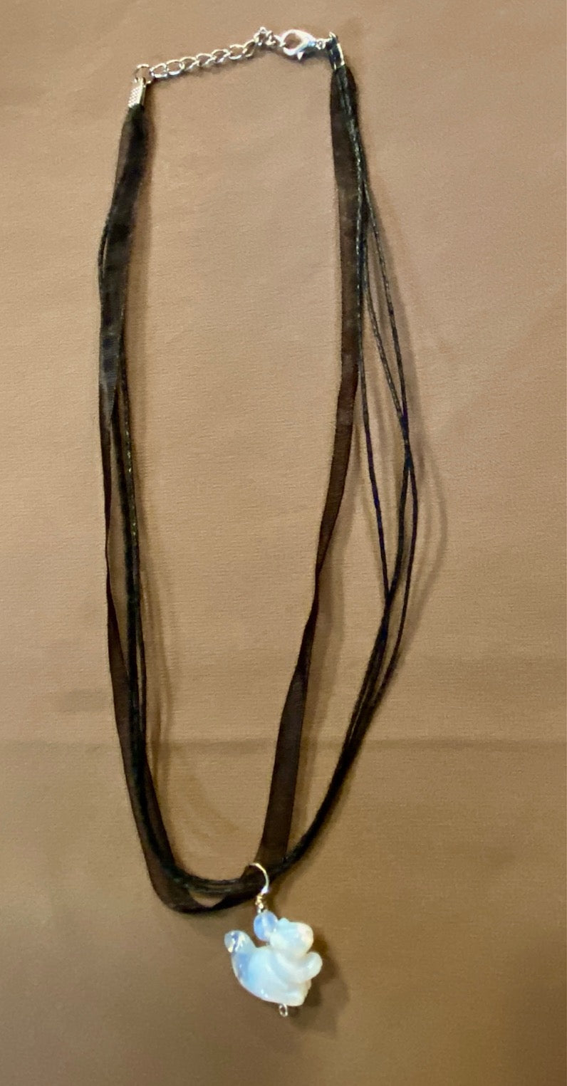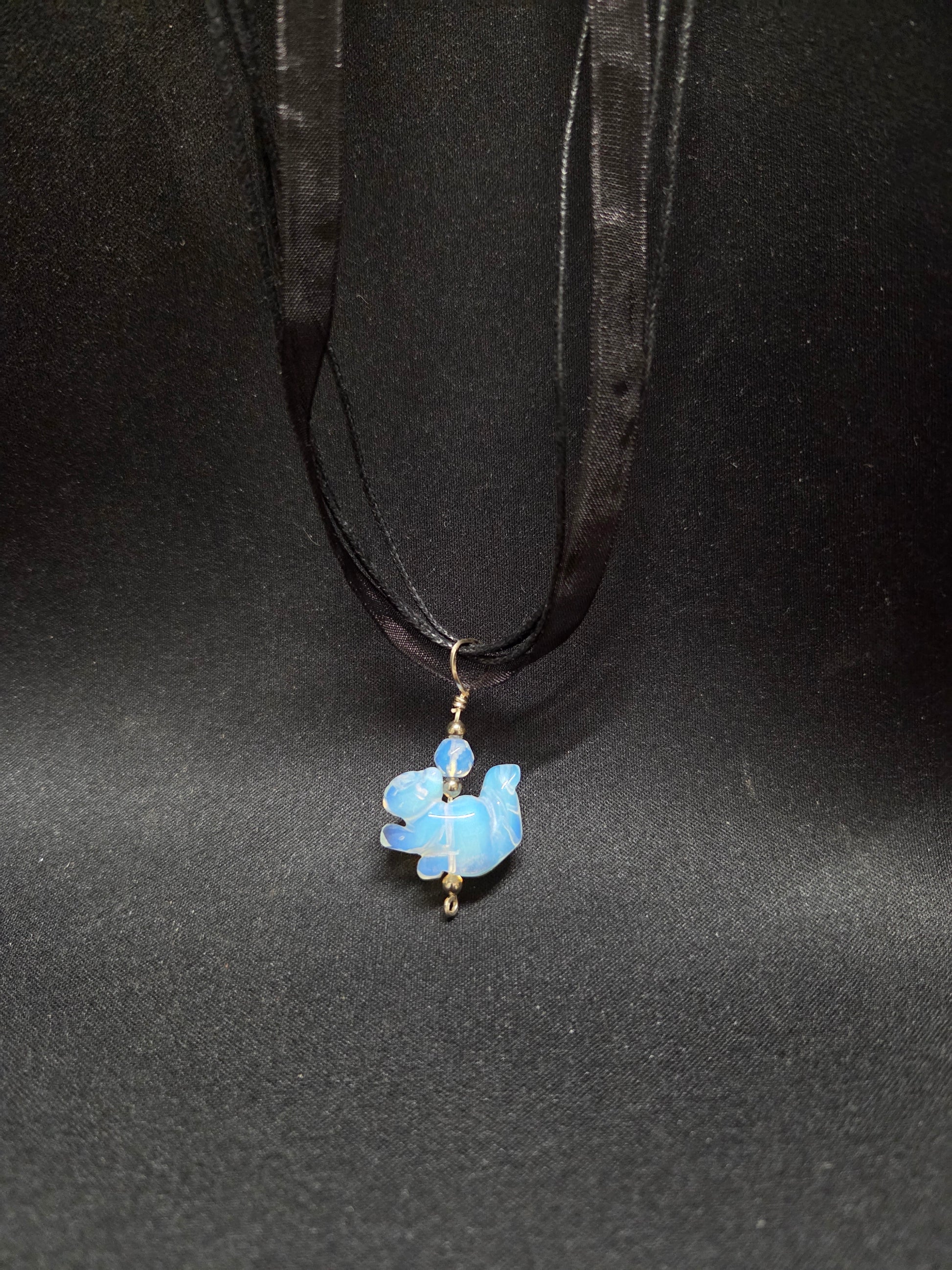 Jewelry - Necklace - Opalite White Squirrel Pendant with black ribbon