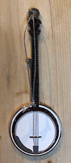 Beautifull metal banjo ornament. Turn it over, and you have a white squirrel and the wording "Brevard, NC" on the back