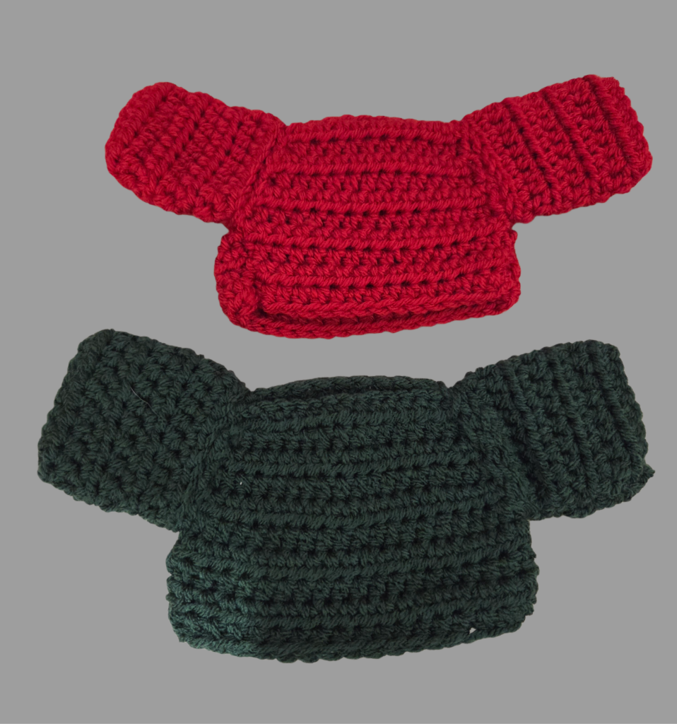 By popular demand! These charming miniature sweaters are lovingly hand-crocheted specifically for your treasured black nose stuffed squirrels. Each tiny sweater is a work of art that transforms your plushie into an even more huggable companion.