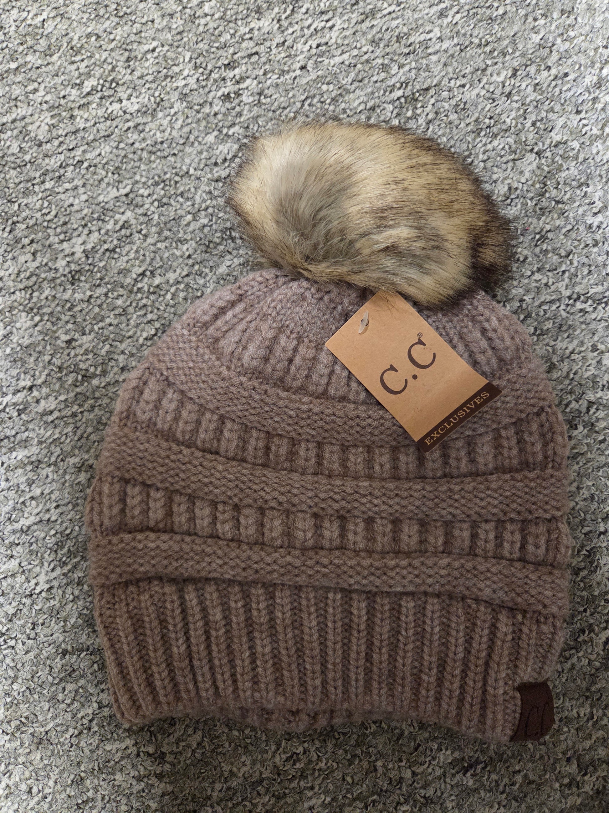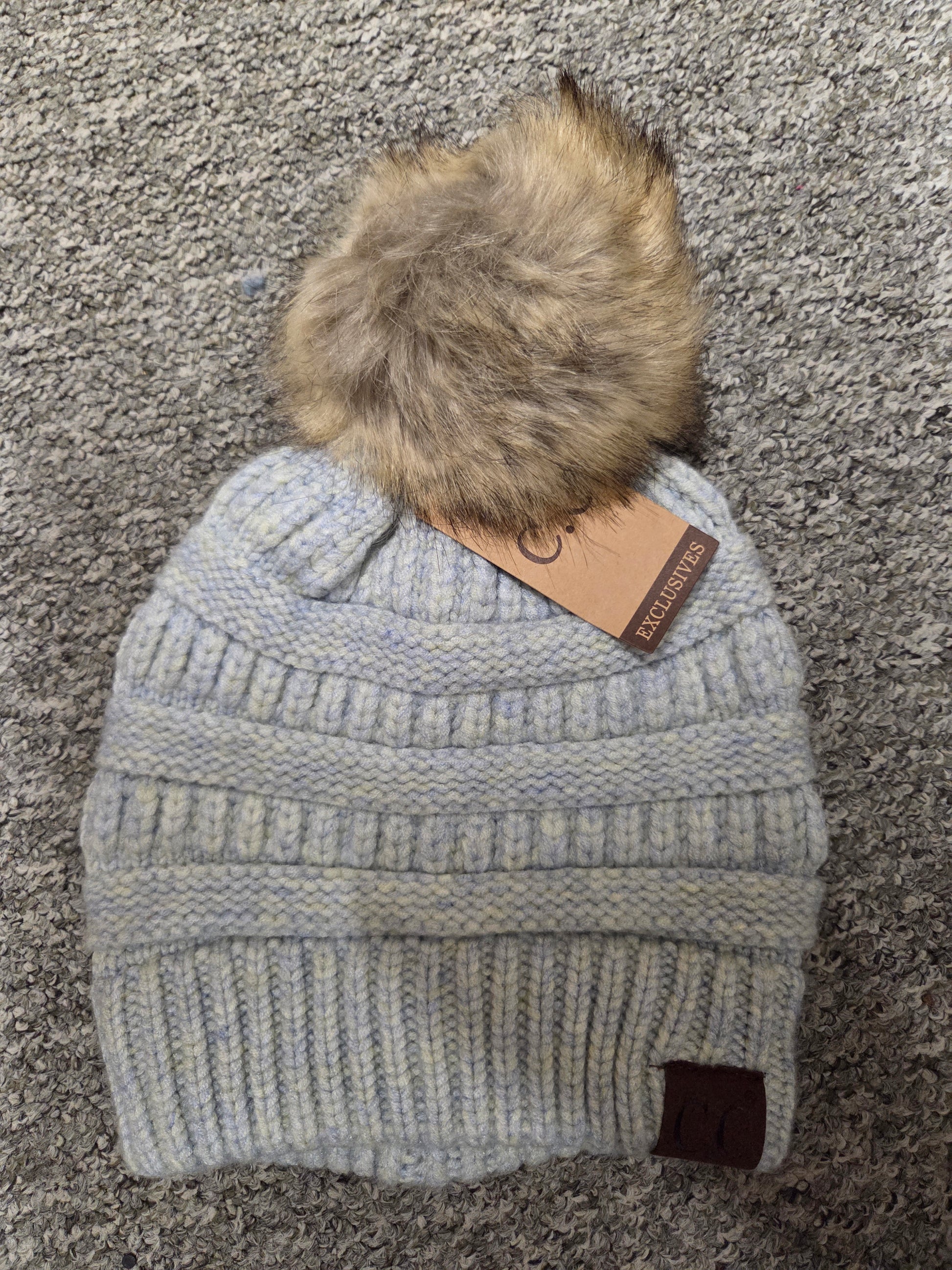 Hat - CC Mixed Soft Yarn with Natural Pom Pom Beanie for Adult Size Heads