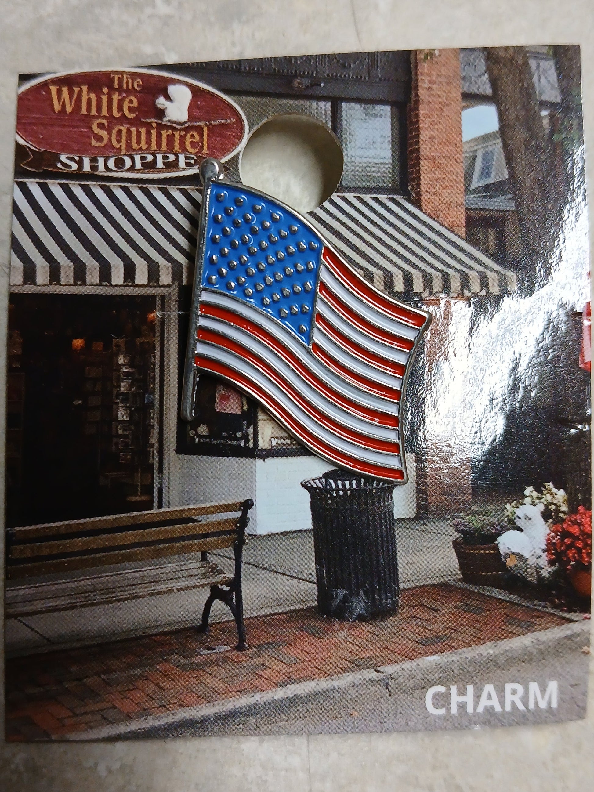 This American Flag hat/lapel pin is simple yet lovely. The waves of the flag make it even more interesting. It measures 7/8" wide x 1" high.