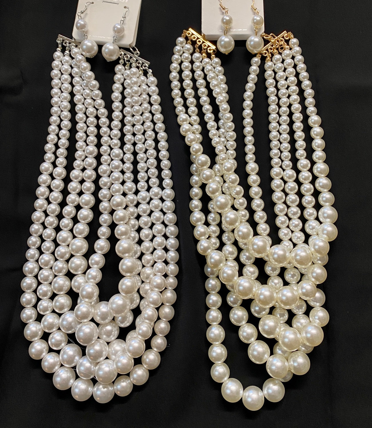 Jewelry - Necklace - Pearl 5-Strand & Earring Set