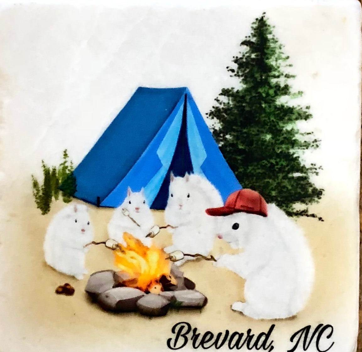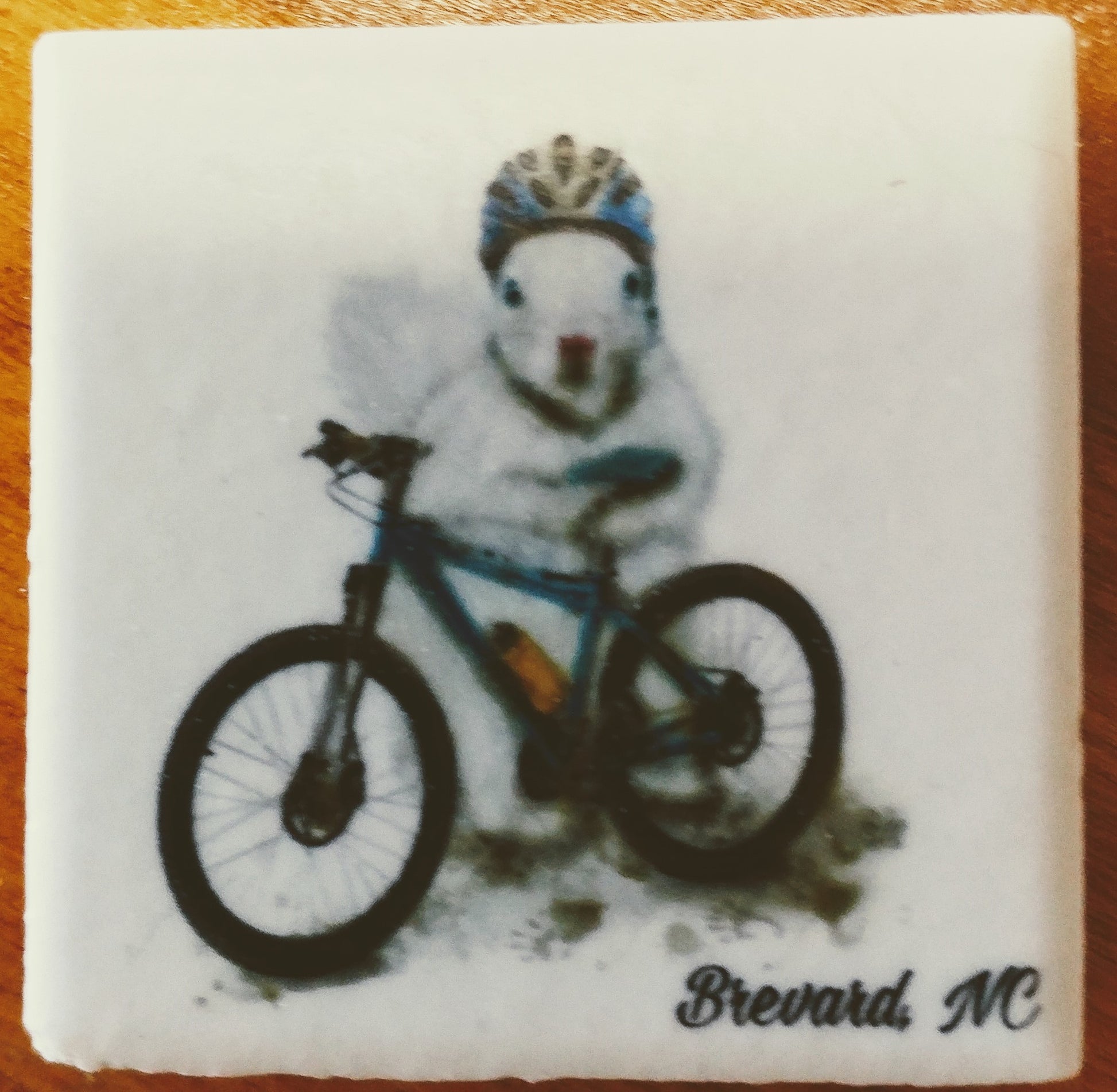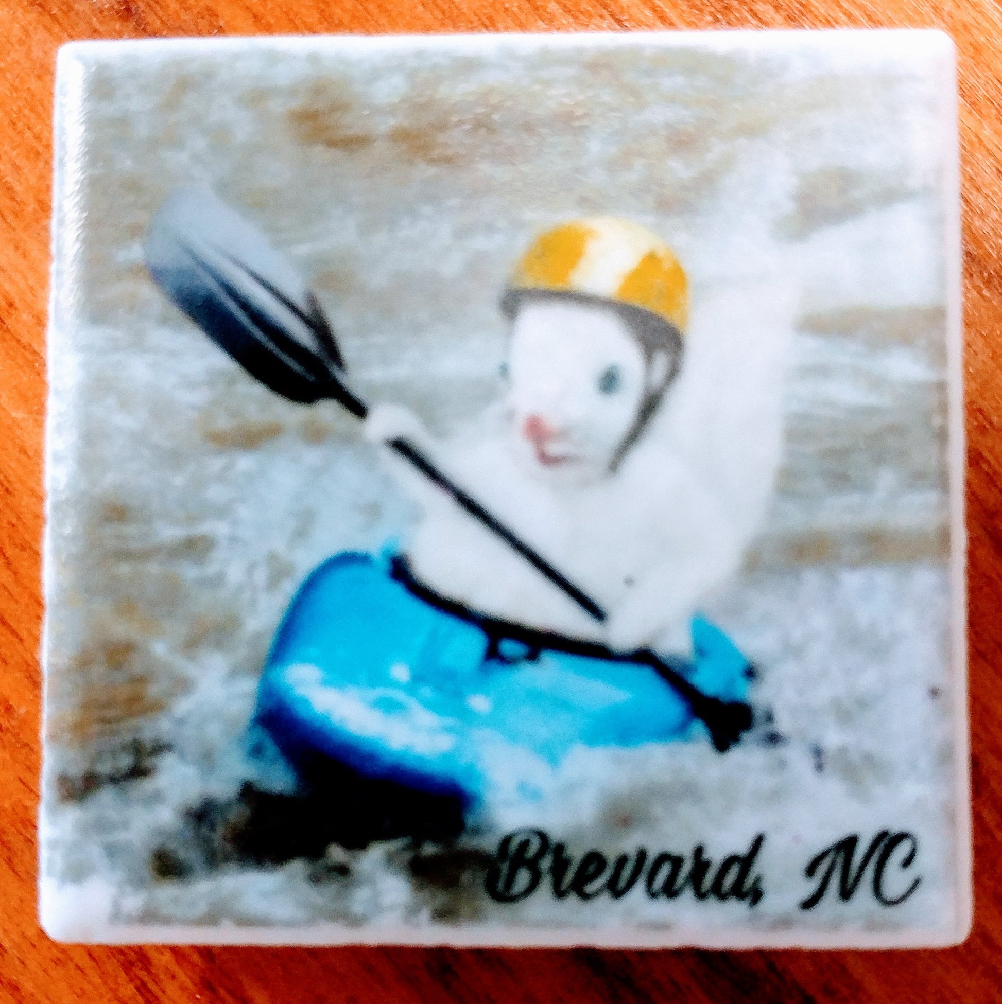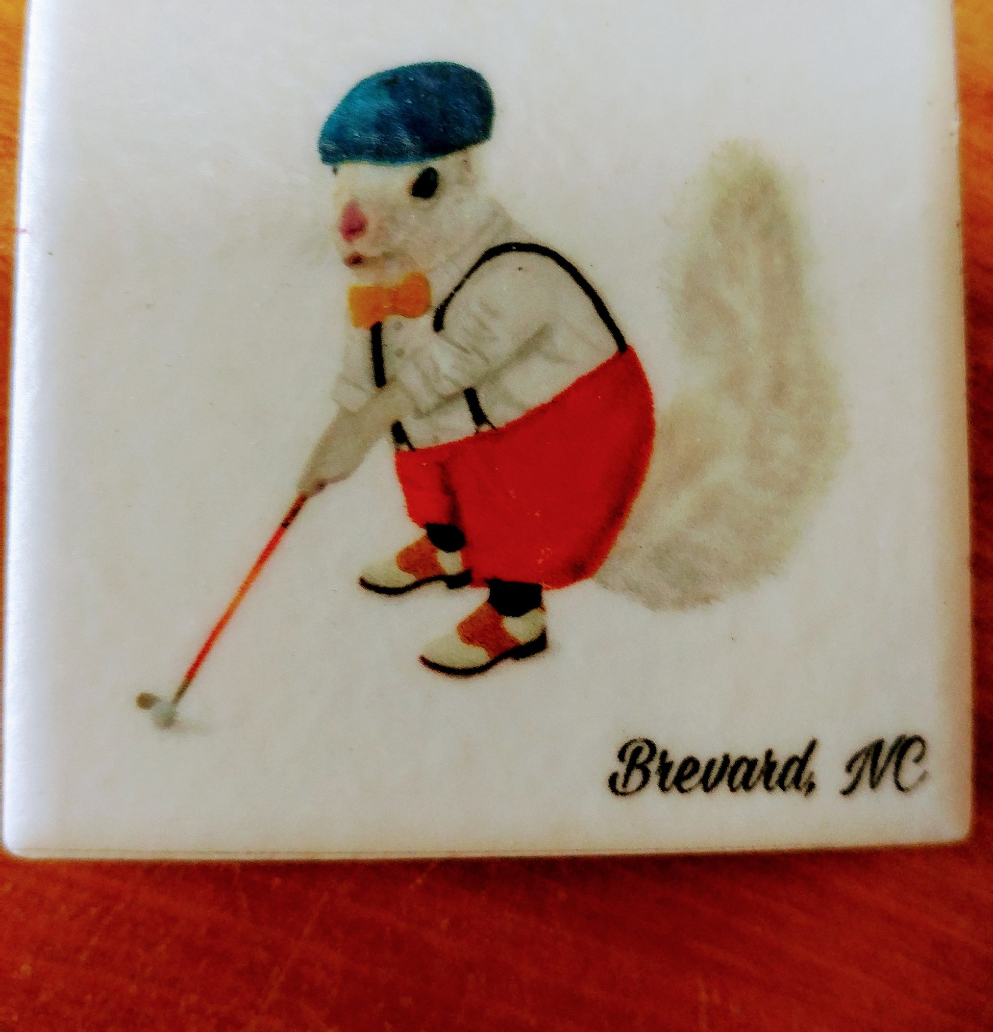 These adorable magnets show our white squirrel having fun doing a variety of activities. Find your favorite. 1 3/4" by 1 3/4"